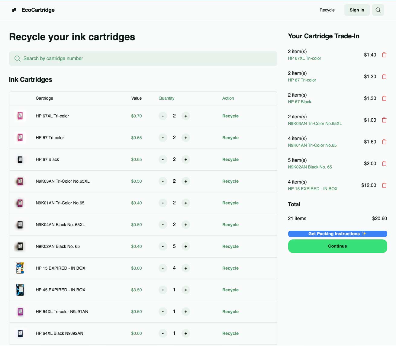 Implementing a new, responsive AI-powered "Eco Cartridge Trade-in App" for InkRecycling.org